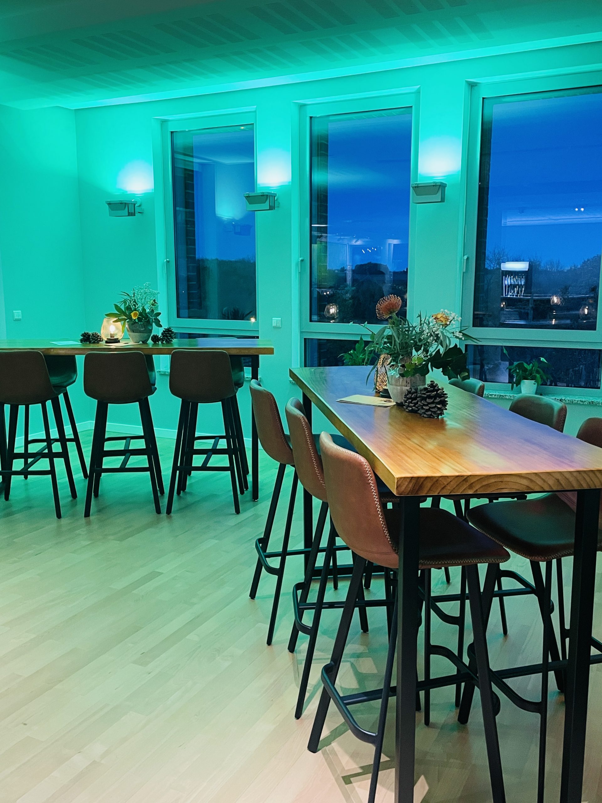 Ob festlich gedeckte Tafeln im warmen Licht, lebendige Gespräche auf der Dachterrasse mit Blick auf die Skyline oder ausgelassene Stimmung auf der Tanzfläche – hier verschmelzen Ambiente, Genuss und Emotion zu einem stimmigen Gesamterlebnis.